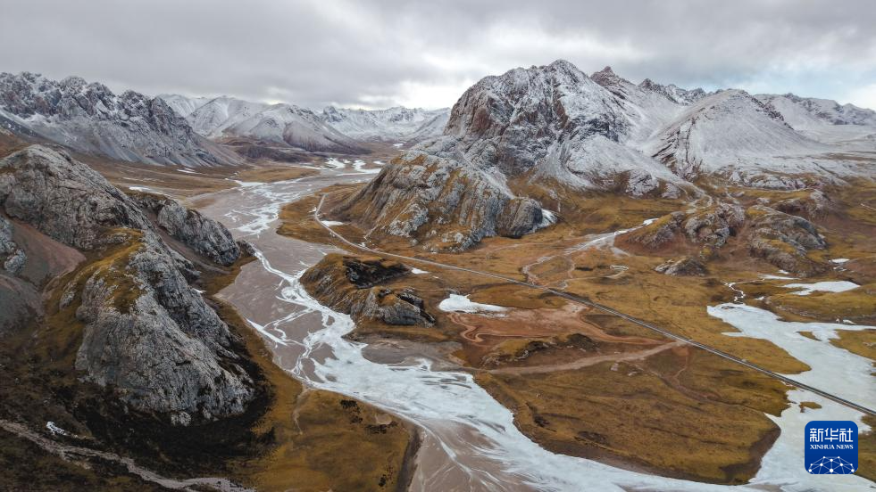 这是1月30日在青海省玉树藏族自治州杂多县境内拍摄的冬景风光(无人机照片)。新华社记者 齐芷玥 摄